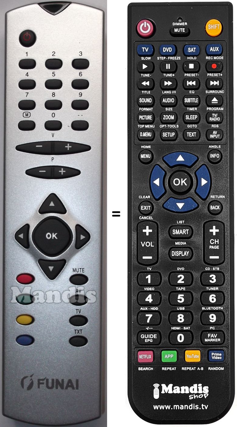 Comando à distância que substitui o original RC1243 (20204028) em todas as suas funções.