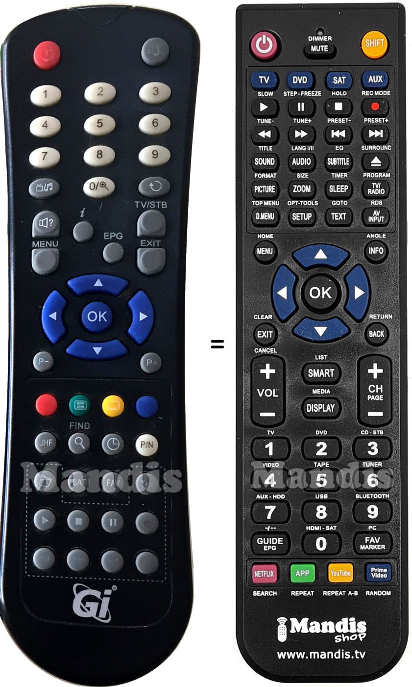 Abaixo, mostraremos a correspondência entre cada botão no controle remoto original e o botão que executa a mesma função no controle remoto de substituição. Em alguns casos, pode ser necessário pressionar a tecla SHIFT antes de pressionar outro botão para realizar determinadas ações. Essas funções adicionais geralmente não são amplamente utilizadas e são incluídas para facilitar o entendimento do controle remoto de substituição, ou porque o controle remoto original tem mais botões do que seu equivalente.