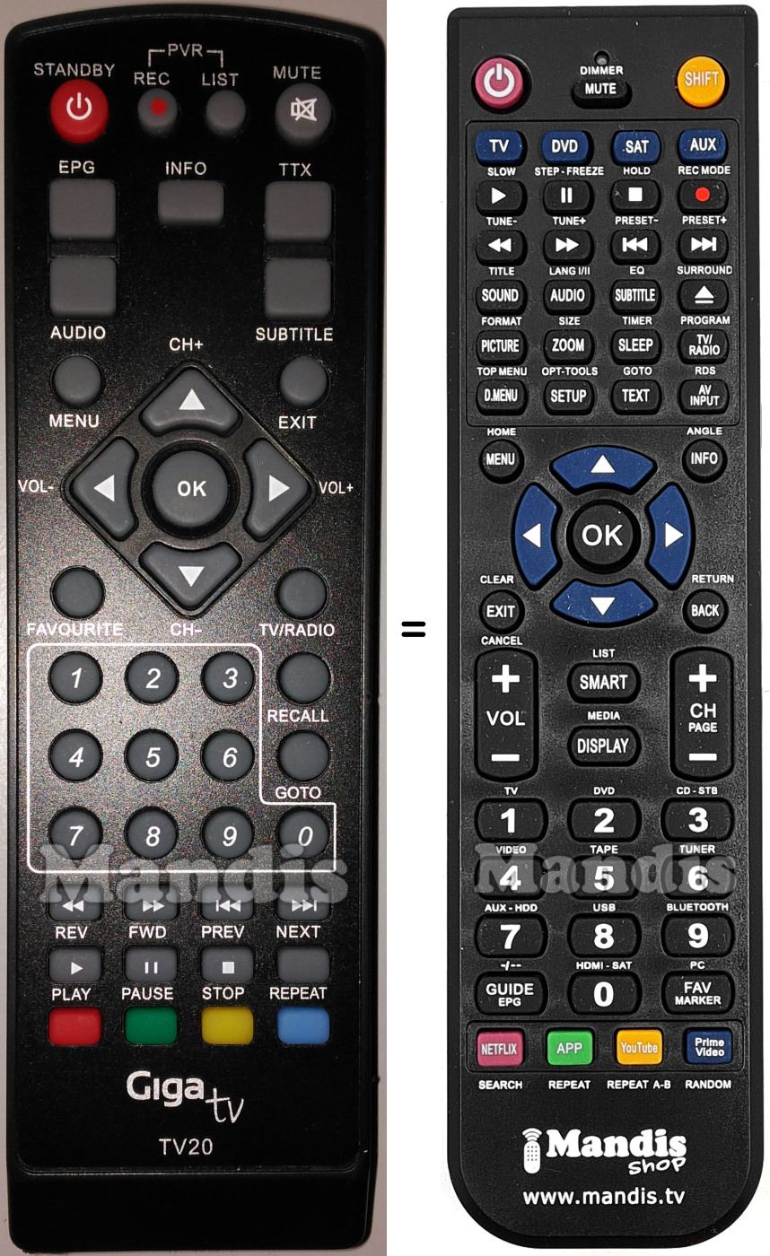 Este comando substitui completamente o seu TV20 e oferece todas as funções do original.