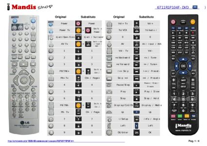 Um documento está incluso para ajudá-lo a usar o novo controle remoto facilmente, mostrando a correspondência dos botões.
