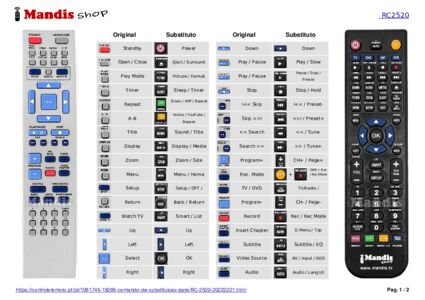 Abaixo, mostraremos a correspondência entre cada botão no controle remoto original e o botão que executa a mesma função no controle remoto de substituição. Em alguns casos, pode ser necessário pressionar a tecla SHIFT antes de pressionar outro botão para realizar determinadas ações. Essas funções adicionais geralmente não são amplamente utilizadas e são incluídas para facilitar o entendimento do controle remoto de substituição, ou porque o controle remoto original tem mais botões do que seu equivalente.