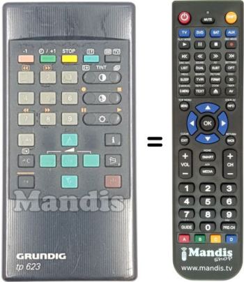 Comando à distância que substitui o original TP 623 em todas as suas funções.
