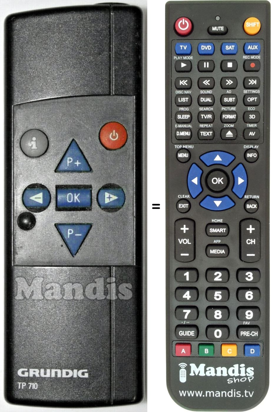 Comando à distância que substitui o original TP 710 (296220590900) em todas as suas funções.