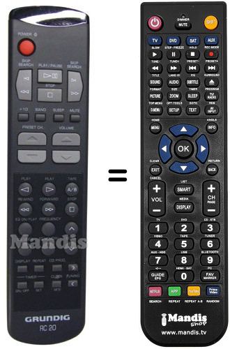 Comando à distância que substitui o original RC20 (759510457700) em todas as suas funções.