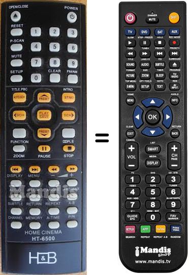 Comando à distância que substitui o original HT6500 em todas as suas funções.