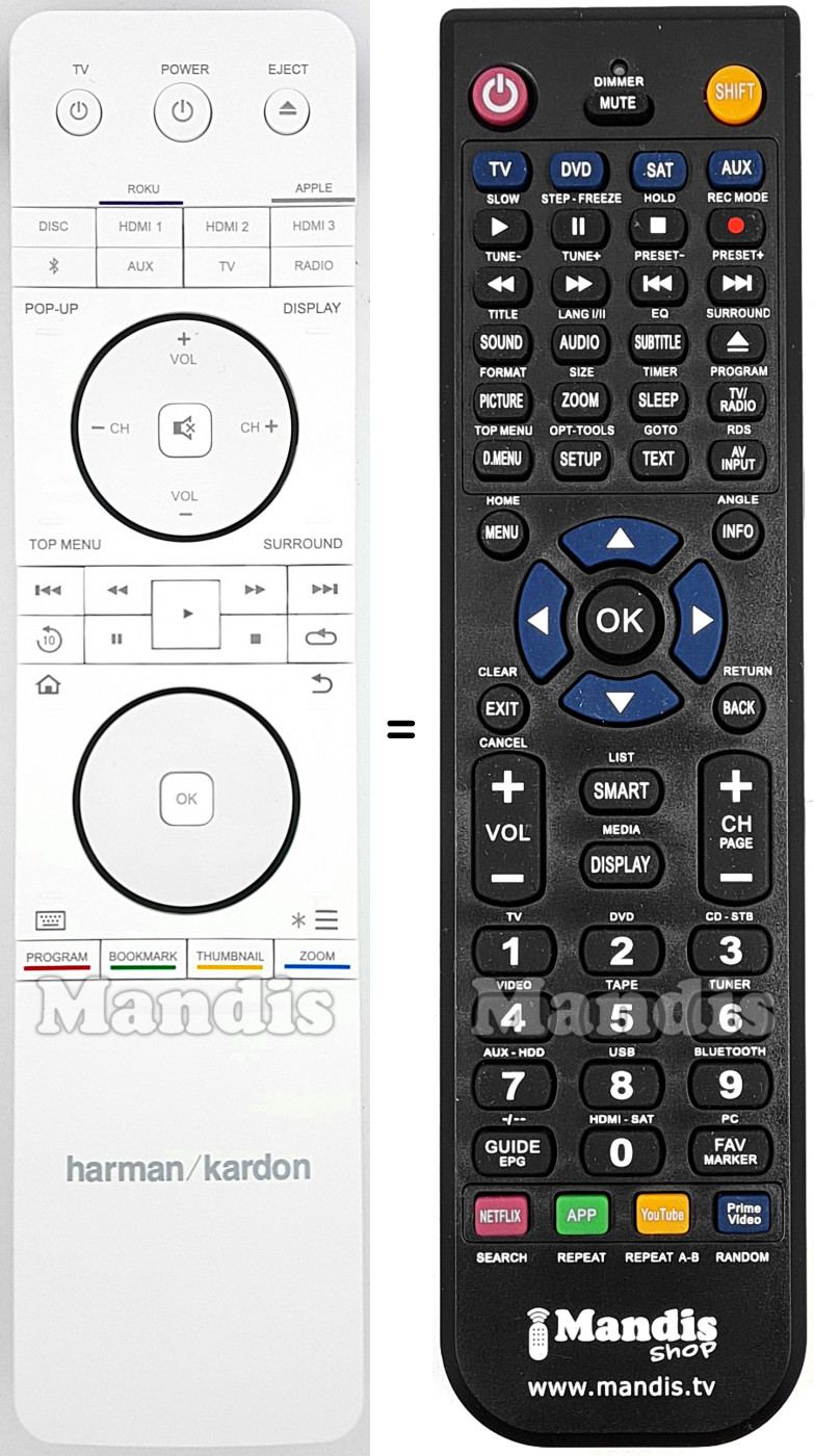 Abaixo, mostraremos a correspondência entre cada botão no controle remoto original e o botão que executa a mesma função no controle remoto de substituição. Em alguns casos, pode ser necessário pressionar a tecla SHIFT antes de pressionar outro botão para realizar determinadas ações. Essas funções adicionais geralmente não são amplamente utilizadas e são incluídas para facilitar o entendimento do controle remoto de substituição, ou porque o controle remoto original tem mais botões do que seu equivalente.