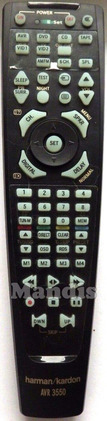 Comando à distância original AVR3550 que serve para sistema hi-fi da marca HARMAN KARDON. Trata-se de um modelo original de comando à distância.