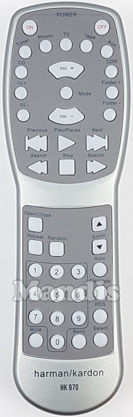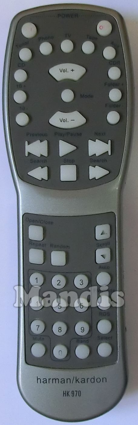 Comando à distância original HK970 da marca HARMAN KARDON. Trata-se de um modelo original de comando à distância.