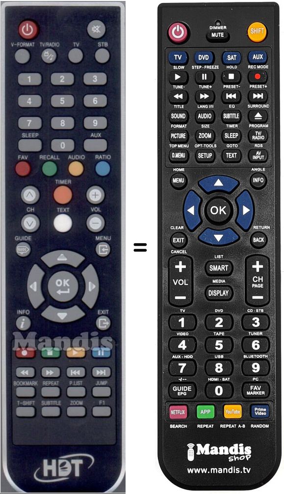 Comando à distância que substitui o original em todas as suas funções.