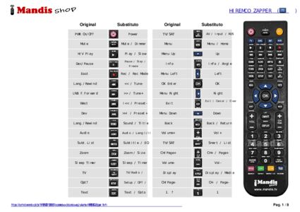 Um documento está incluso para ajudá-lo a usar o novo controle remoto facilmente, mostrando a correspondência dos botões.