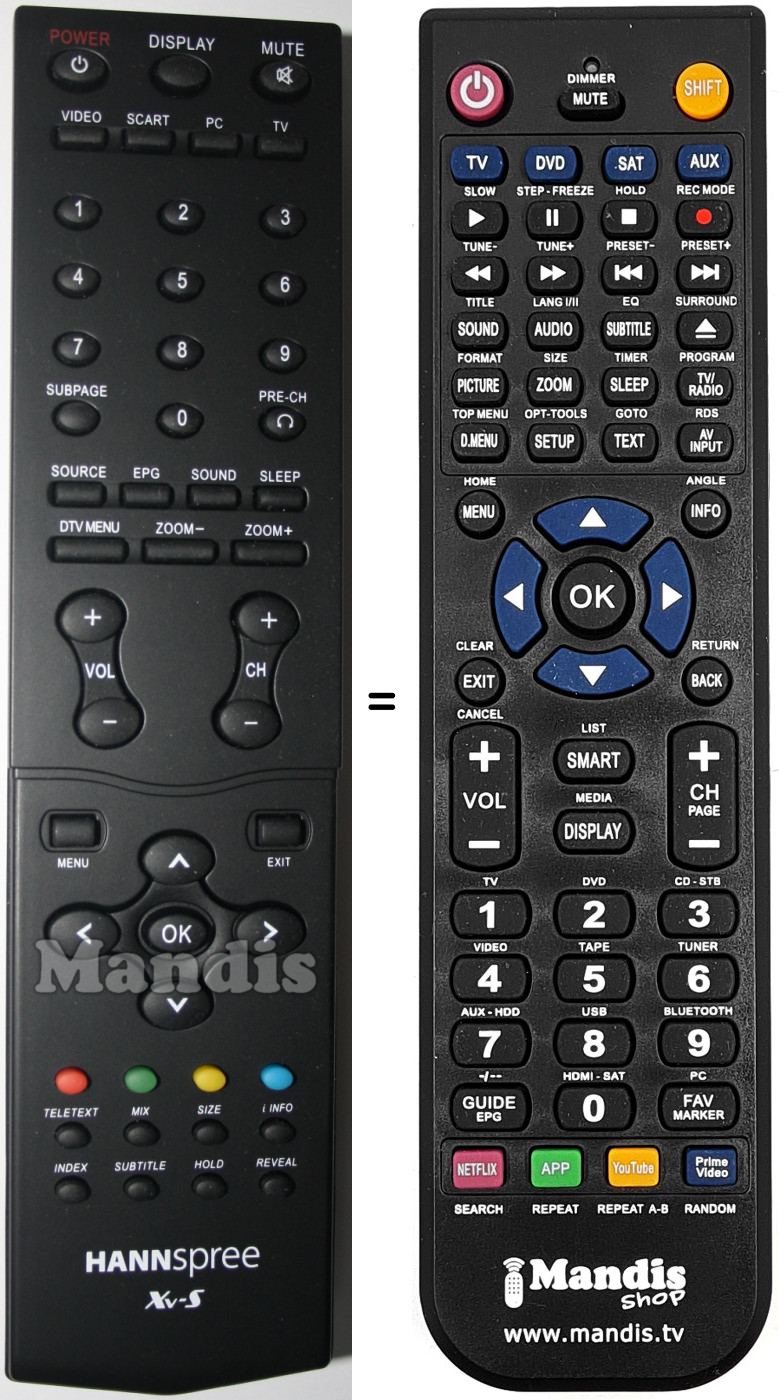 Comando à distância que substitui o original Xv-S (98TRABD-5NT-HSF) em todas as suas funções.