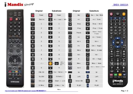 Um documento está incluso para ajudá-lo a usar o novo controle remoto facilmente, mostrando a correspondência dos botões.