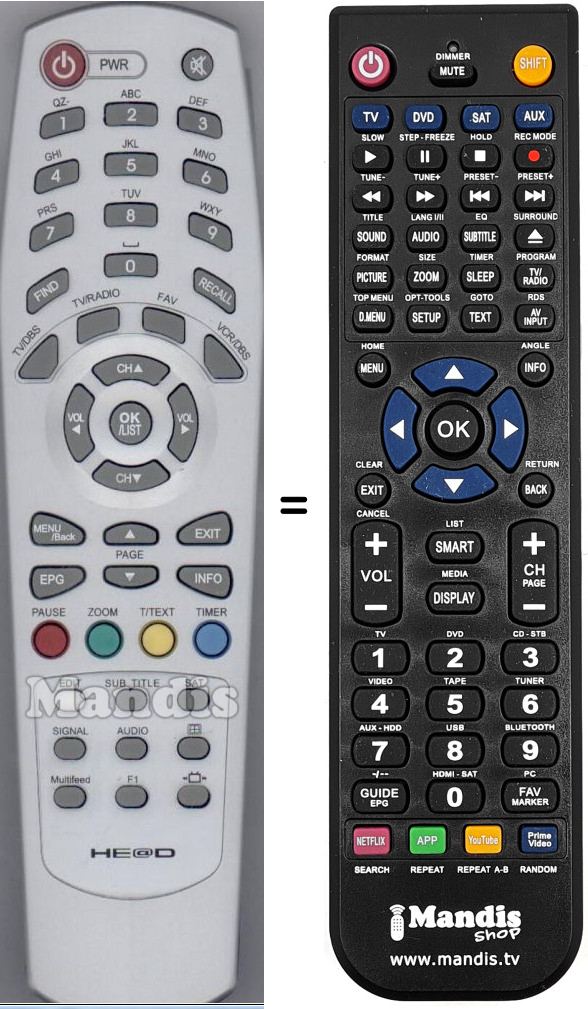 Comando à distância que substitui o original SD 2500 em todas as suas funções.