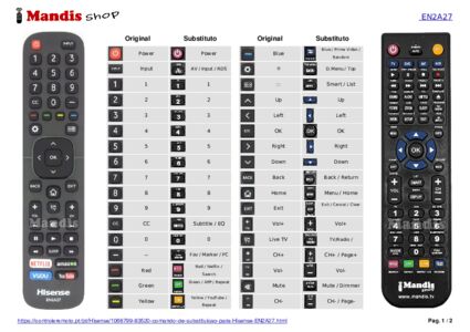 Um documento está incluso para ajudá-lo a usar o novo controle remoto facilmente, mostrando a correspondência dos botões.