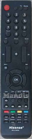 Comando à distância original EN-31603A da marca Hisense. Trata-se de um modelo original de comando à distância.