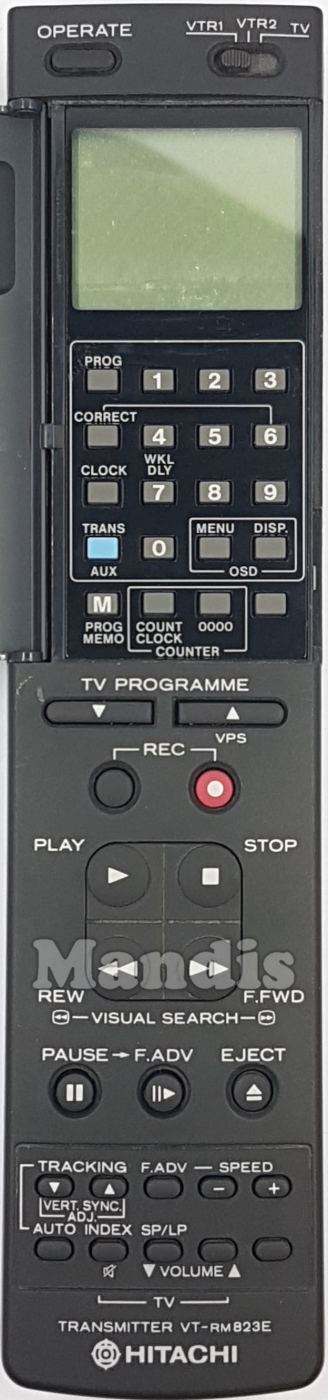 Operate, PROG, 1, 2, 3, Correct, 4, 5, 6, Clock, 7/WKL DLY, 8, 9, Trans/AUX, 0, Menu OSD, Disp. OSD, M/PROG Memo, Count Clock , 0000, Nothing, TV Programme-, TV Programe/vps+, REC, Play, Stop, << REW/Visual Search, >> F.FWD/Visual Search, Pause, II> F.ADV, Eject, Tracking-, Tracking+, F.ADV, Speed-, Speed+, Auto, Index/Mute, SP/LP/Volume-, Volume+