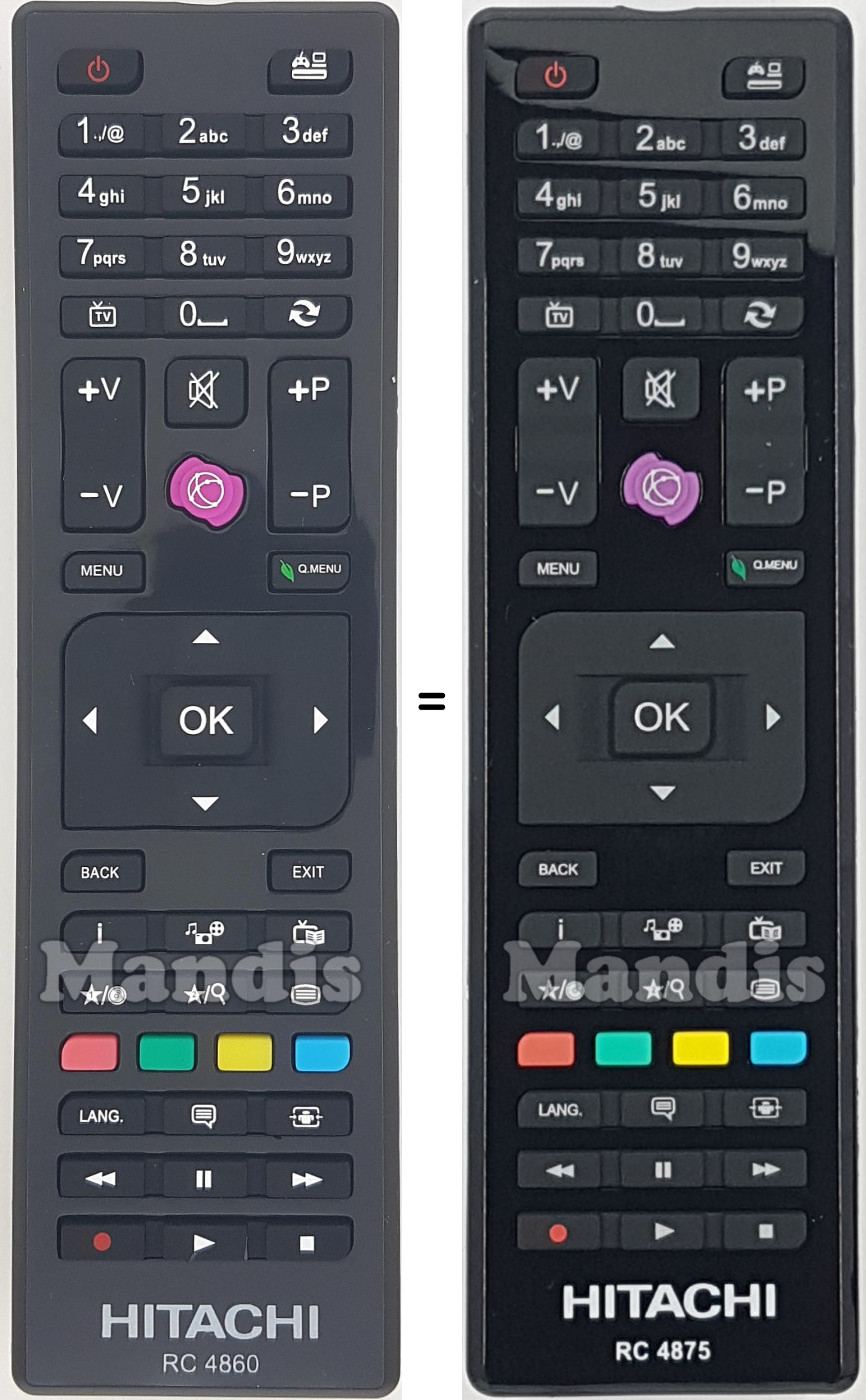Comando à distância original RC4875 (U258505) que serve para televisores da marca Hitachi.
