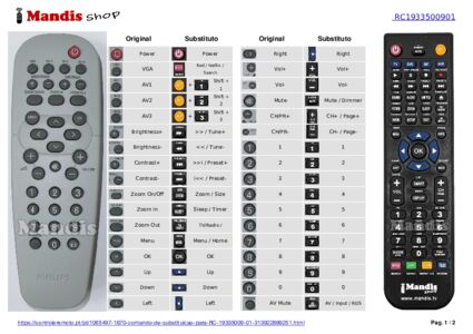 Um documento está incluso para ajudá-lo a usar o novo controle remoto facilmente, mostrando a correspondência dos botões.
