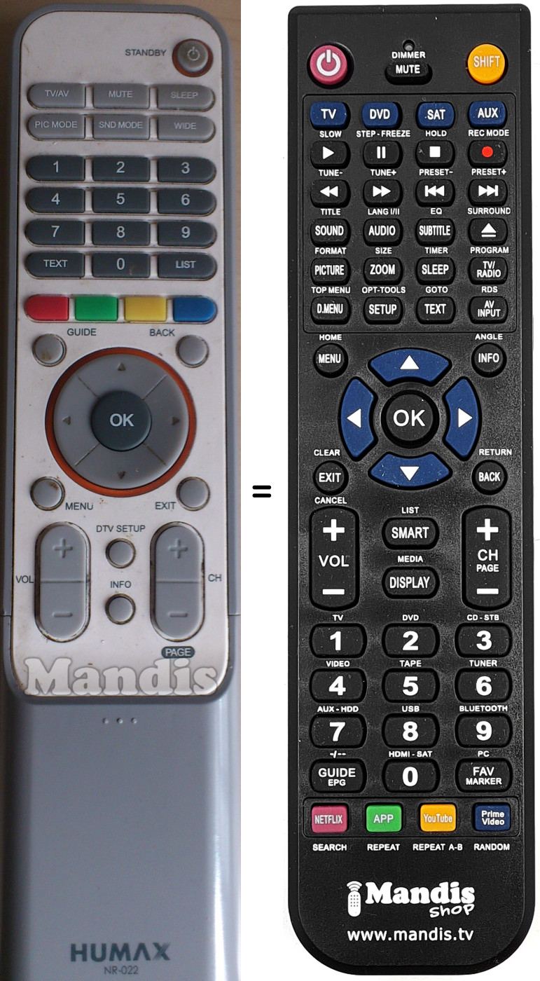 Comando à distância que substitui o original NR022 em todas as suas funções.