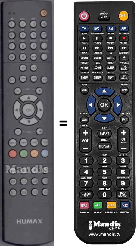 Comando à distância que substitui o original em todas as suas funções.
