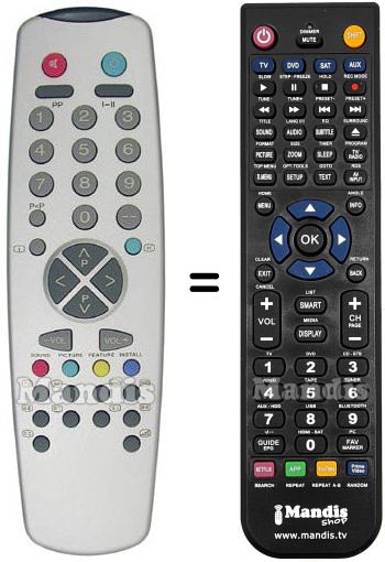 Um documento está incluso para ajudá-lo a usar o novo controle remoto facilmente, mostrando a correspondência dos botões.