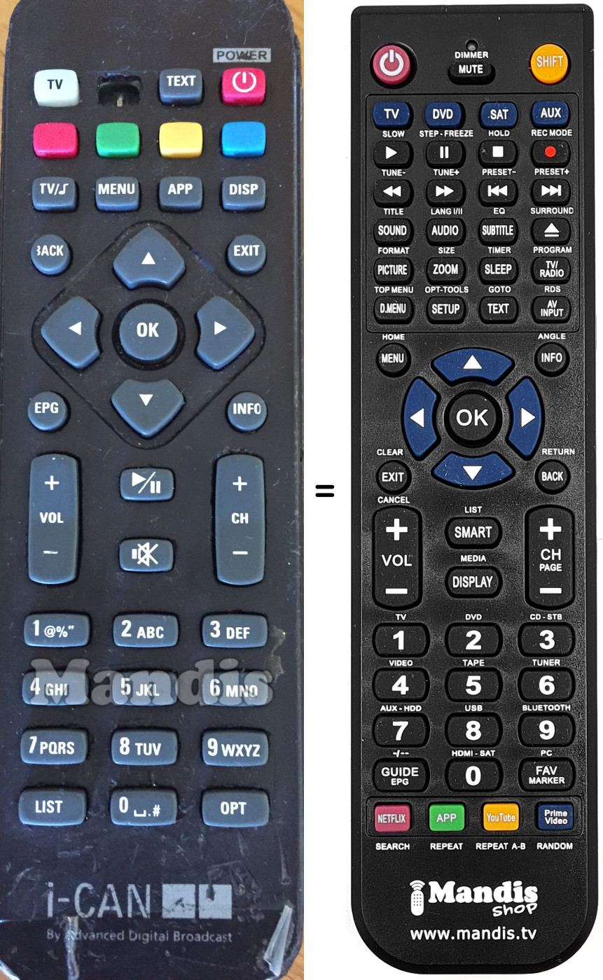 Comando à distância que substitui o original ICAN1110SV-STORM (ICAN1110SVSTORM) em todas as suas funções.