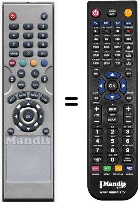 Comando à distância que substitui o original IRC8000C em todas as suas funções.