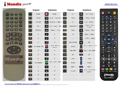 Este comando substitui completamente o seu REMCON1436 e oferece todas as funções do original.