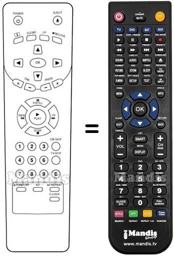 Este controle remoto substitui a maioria das funções do seu REMCON1345. Não é um controle remoto universal, mas sim uma cópia com a maioria dos botões e funções do seu original.