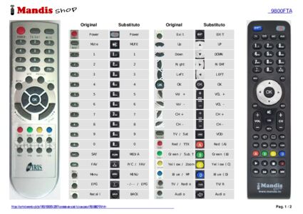 Um documento está incluso para ajudá-lo a usar o novo controle remoto facilmente, mostrando a correspondência dos botões.