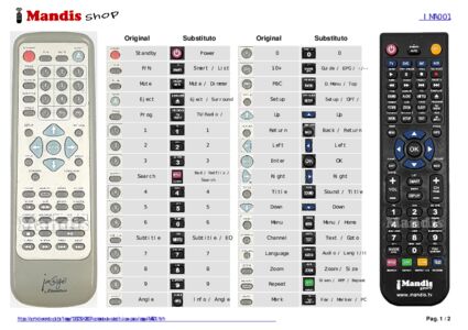 Abaixo, mostraremos a correspondência entre cada botão no controle remoto original e o botão que executa a mesma função no controle remoto de substituição. Em alguns casos, pode ser necessário pressionar a tecla SHIFT antes de pressionar outro botão para realizar determinadas ações. Essas funções adicionais geralmente não são amplamente utilizadas e são incluídas para facilitar o entendimento do controle remoto de substituição, ou porque o controle remoto original tem mais botões do que seu equivalente.