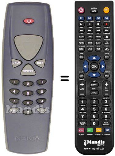 Comando à distância que substitui o original REMCON602 em todas as suas funções.