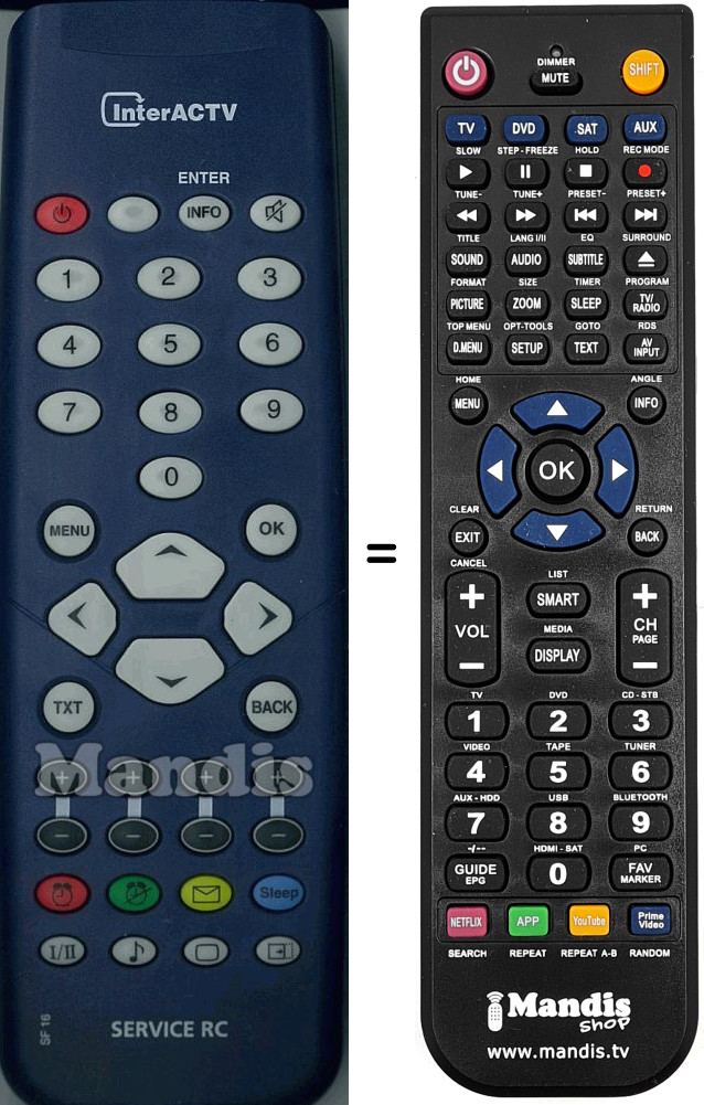 Comando à distância que substitui o original SF16 em todas as suas funções.