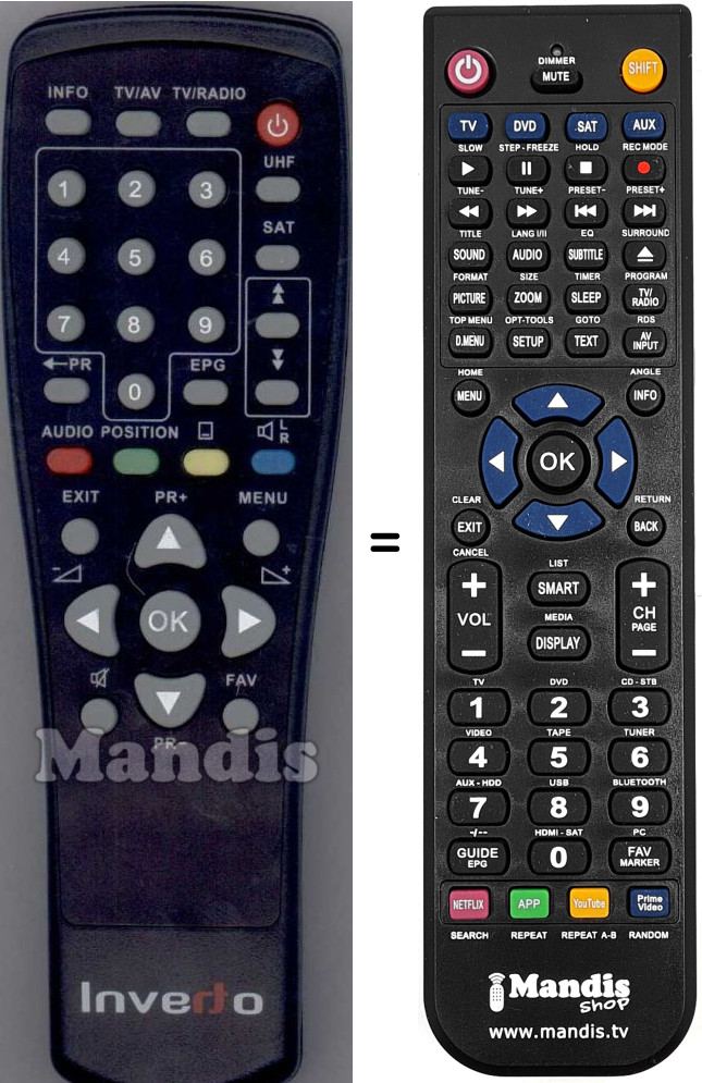 Comando à distância que substitui o original 1073 em todas as suas funções.