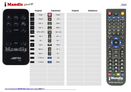 Abaixo, mostraremos a correspondência entre cada botão no controle remoto original e o botão que executa a mesma função no controle remoto de substituição. Em alguns casos, pode ser necessário pressionar a tecla SHIFT antes de pressionar outro botão para realizar determinadas ações. Essas funções adicionais geralmente não são amplamente utilizadas e são incluídas para facilitar o entendimento do controle remoto de substituição, ou porque o controle remoto original tem mais botões do que seu equivalente.