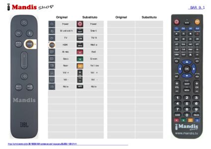 Comando à distância que substitui o original BAR 9.1 (R24-9) em todas as suas funções.
