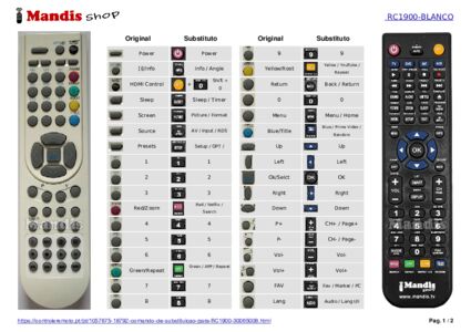 Este comando substitui completamente o seu RC1900 (30065008) e oferece todas as funções do original.
