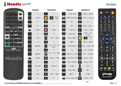Abaixo, mostraremos a correspondência entre cada botão no controle remoto original e o botão que executa a mesma função no controle remoto de substituição. Em alguns casos, pode ser necessário pressionar a tecla SHIFT antes de pressionar outro botão para realizar determinadas ações. Essas funções adicionais geralmente não são amplamente utilizadas e são incluídas para facilitar o entendimento do controle remoto de substituição, ou porque o controle remoto original tem mais botões do que seu equivalente.