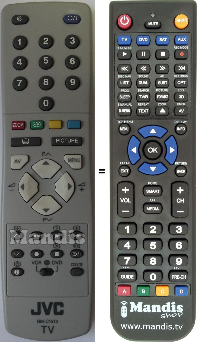 Controle remoto para JVC RM-C1512S (VE30021287)