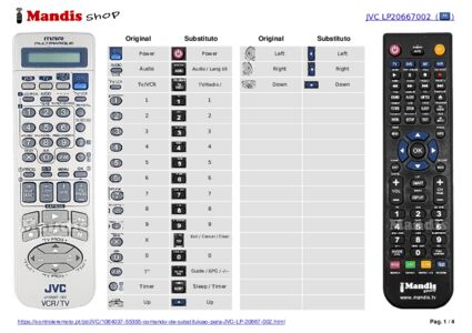 Um documento está incluso para ajudá-lo a usar o novo controle remoto facilmente, mostrando a correspondência dos botões.