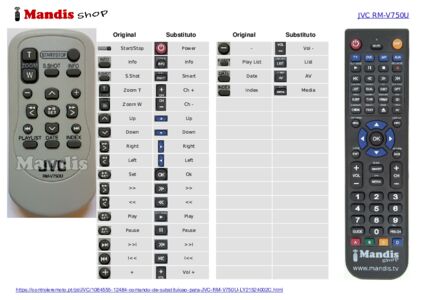 Comando à distância que substitui o original RMV750U (LY21524002CML) em todas as suas funções. Não se trata de um comando universal, mas sim de um comando que substitui o original. Receberá um comando completamente pronto. Para fazê-lo funcionar, basta colocar as pilhas. Não é necessário programá-lo. Damos-lhe total garantia de que o comando cumprirá com as mesmas funções do comando original.