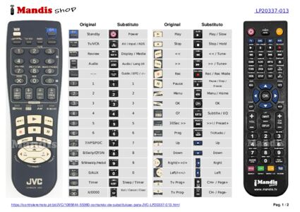 Abaixo, mostraremos a correspondência entre cada botão no controle remoto original e o botão que executa a mesma função no controle remoto de substituição. Em alguns casos, pode ser necessário pressionar a tecla SHIFT antes de pressionar outro botão para realizar determinadas ações. Essas funções adicionais geralmente não são amplamente utilizadas e são incluídas para facilitar o entendimento do controle remoto de substituição, ou porque o controle remoto original tem mais botões do que seu equivalente.