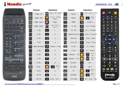 Abaixo, mostraremos a correspondência entre cada botão no controle remoto original e o botão que executa a mesma função no controle remoto de substituição. Em alguns casos, pode ser necessário pressionar a tecla SHIFT antes de pressionar outro botão para realizar determinadas ações. Essas funções adicionais geralmente não são amplamente utilizadas e são incluídas para facilitar o entendimento do controle remoto de substituição, ou porque o controle remoto original tem mais botões do que seu equivalente.