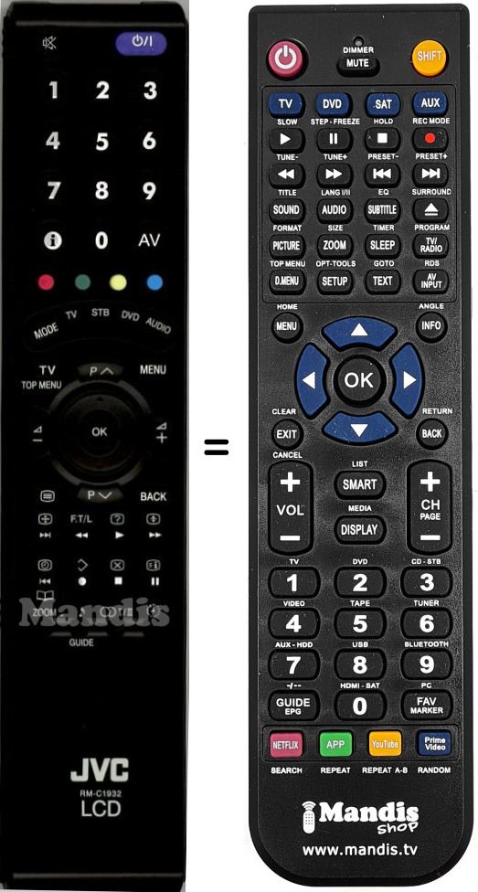 Comando à distância que substitui o original RMC1932 (RMC19321C) em todas as suas funções.