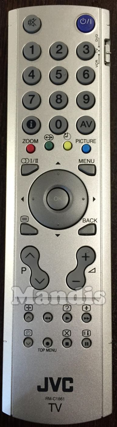Comando à distância original RM-C1861 (30039453) que serve para televisores da marca JVC. Trata-se de um modelo original de comando à distância.