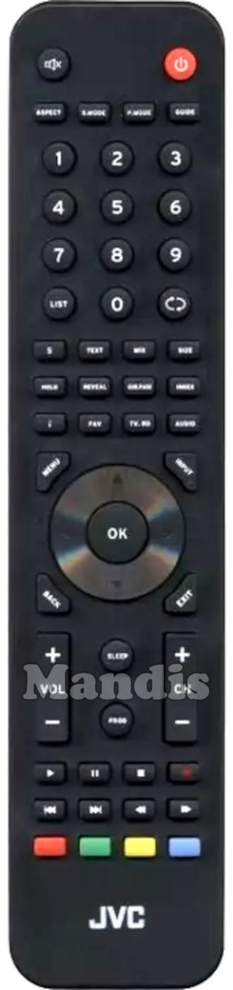 Power, Mute, Aspect, S.Mode, P.Mode, Guide, 1, 2, 3, 4, 5, 6, 7, 8, 9, 0, List, Recall, S, Text, Mix, Size, Hold, Reveal, Sub.Page, Index, i, FAV, TV.RD, Audio, Menu, Input, Back, Exit, Up, Left, OK, Right, Down, Vol+, Vol-, Sleep, Prog, CH+, CH-, Play, Pause, Stop, Rec, I<<, >>I, <<, >>, Red, Green, Yellow, Blue