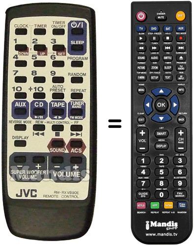 Comando à distância que substitui o original RM-RXVB 90 E (QAL0066003) em todas as suas funções.