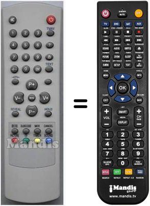 Comando à distância que substitui o original MT2128530 em todas as suas funções.