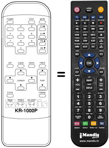 Comando à distância que substitui o original KR-1000 P em todas as suas funções.