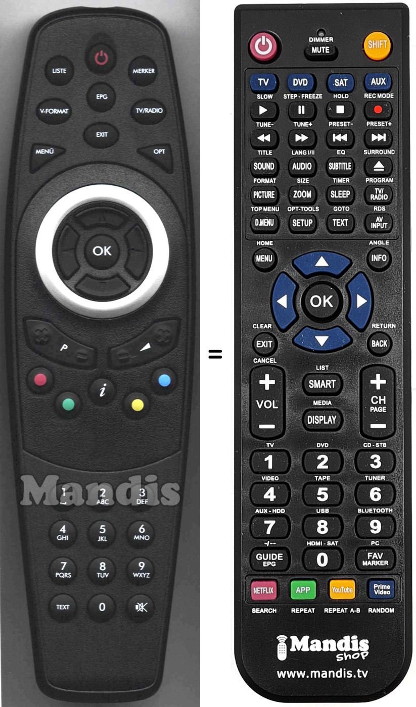 Comando à distância que substitui o original 6992108100 em todas as suas funções.